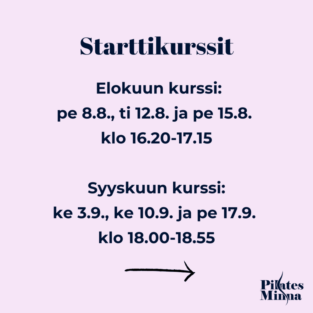 Tervetuloa alkusyksyn tunneille ja kursseille!